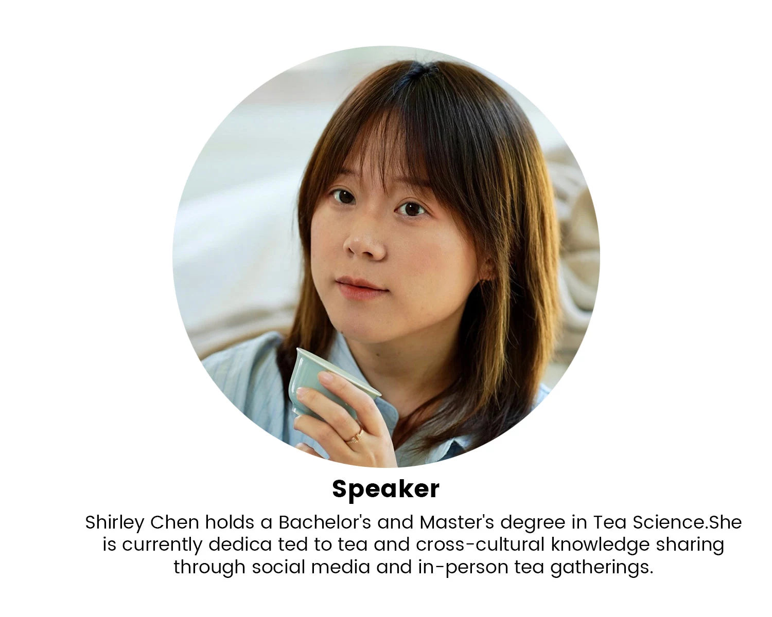 Oolong tea is one of the most diverse and fascinating categories of tea, positioned between green and black tea in processing and flavor. In this presentation, Shirley Chen will introduce newcomers to the basics of oolong—how its raw materials and processing set it apart from other tea types. Participants will also learn how to go deeper: exploring how climate, altitude, and regional terroir influence taste, and how traditional techniques such as fermentation and roasting create remarkable variety. Attendees will leave with practical knowledge to better appreciate, select, and explore the world of oolong tea.