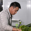 These wild green teas are plucked deep within the ancient forests of Hezhou's Kaishan region. "To find the trees growing around 1,000 meters, I must trek over rugged mountain paths - it takes 4-5 hours each way," explains local farmer Shanren Chen. Blanketed in perpetual mist with rich, fertile soil, this is the ideal environment for these wild buds to thrive. "That's why my tea is three times the price of others," he notes proudly.