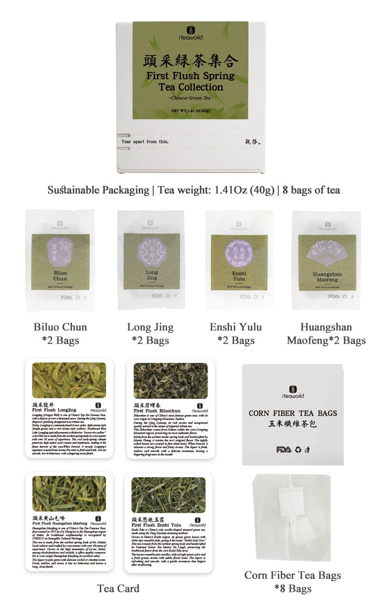 Unit price perFirst Flush Spring Green Tea Collection brings together four of China’s most iconic green teas — all harvested as First Flush, the very first picking of early spring.