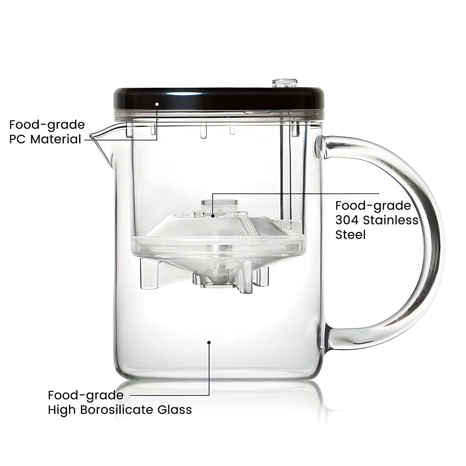Materials: High-borosilicate glass, 304 stainless steel filter,  PC lid and infuser