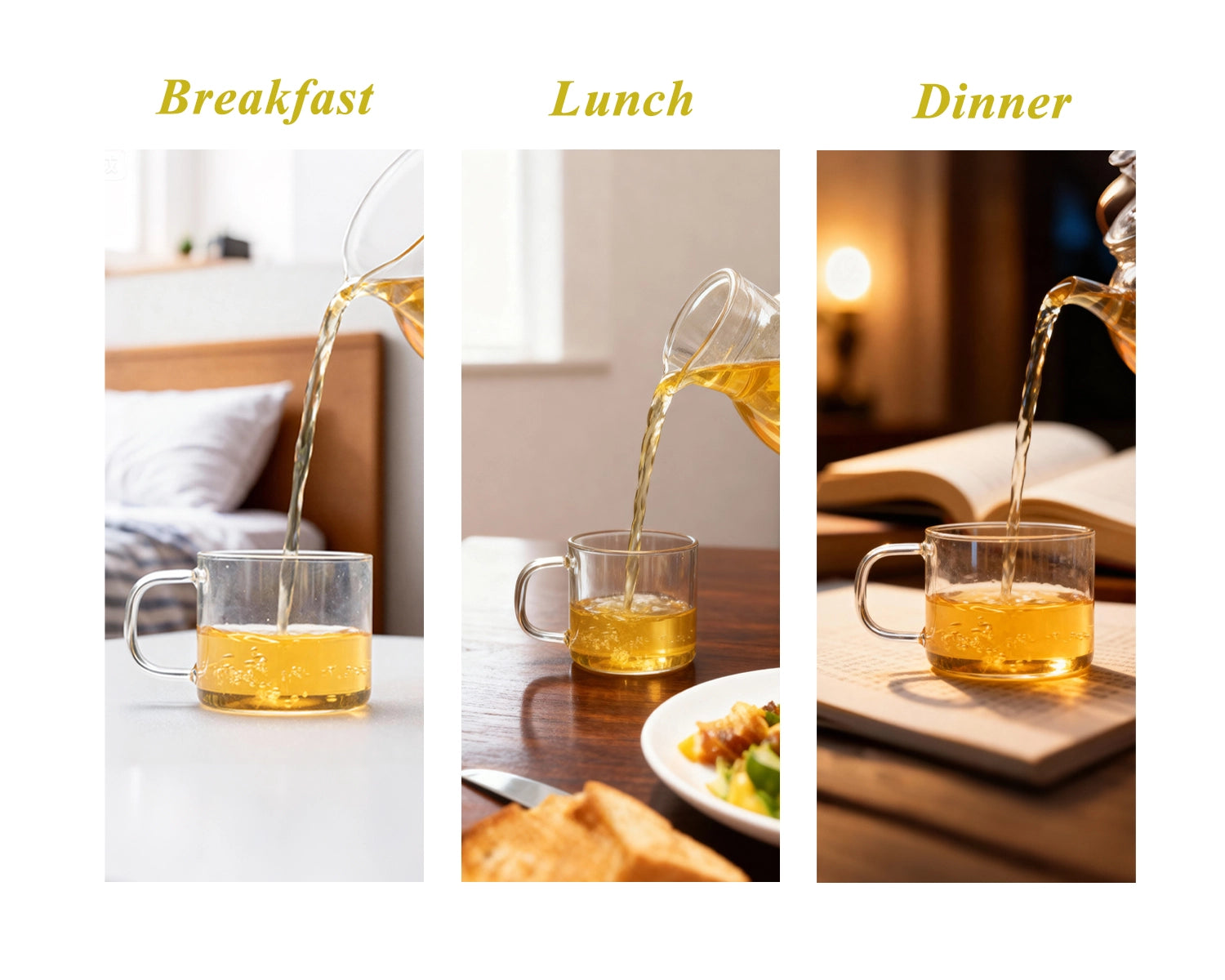 This tea is suitable for a relaxing moment in the afternoon. Whether it is to enjoy a quiet time alone or as a perfect companion for afternoon tea, it can add a freshness and pleasure to the day. Especially when you are tired from work in the afternoon, brew a cup of three-scented jasmine tea, the aroma is fragrant, and it quickly refreshes the mind.