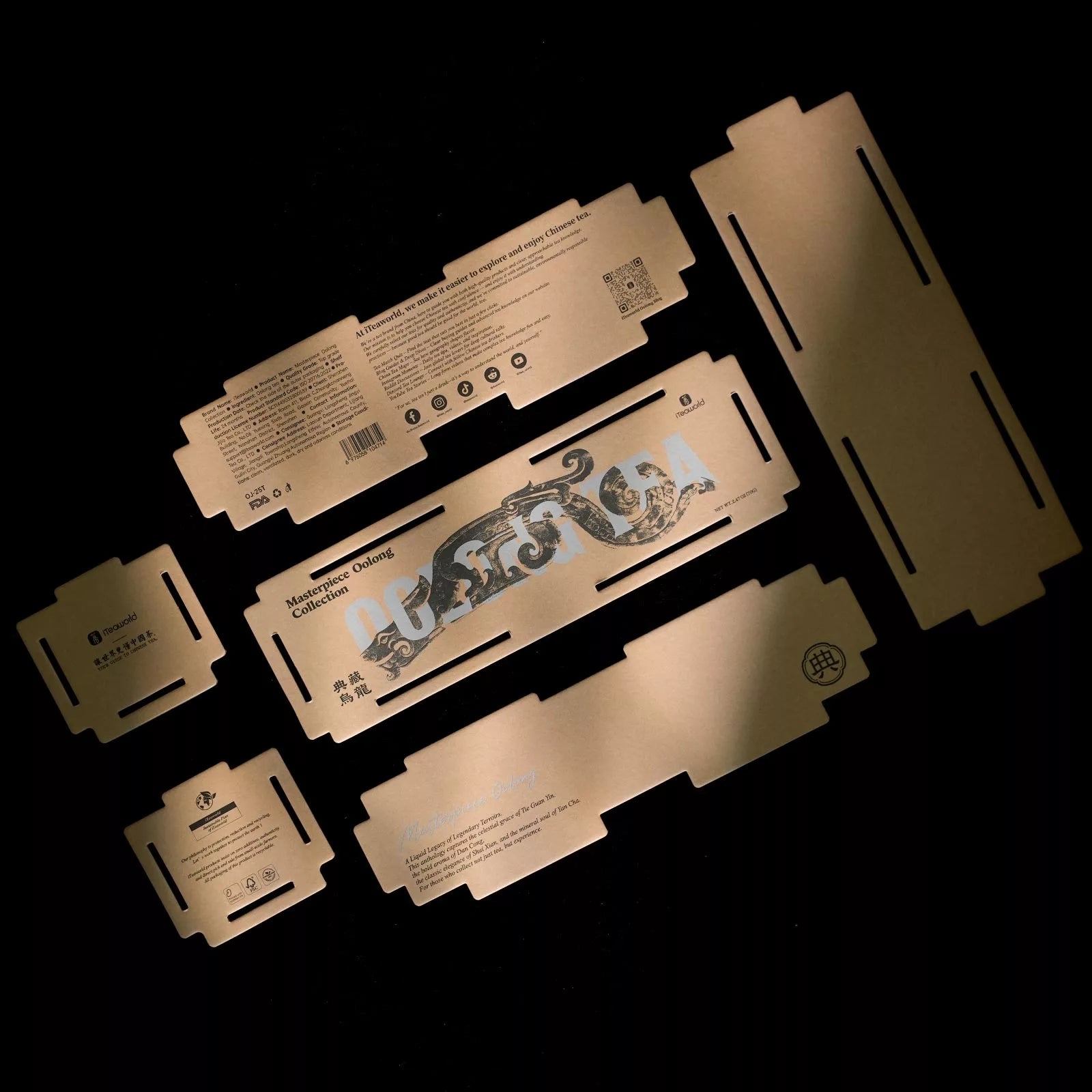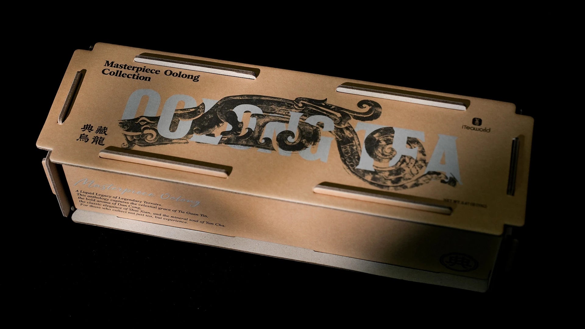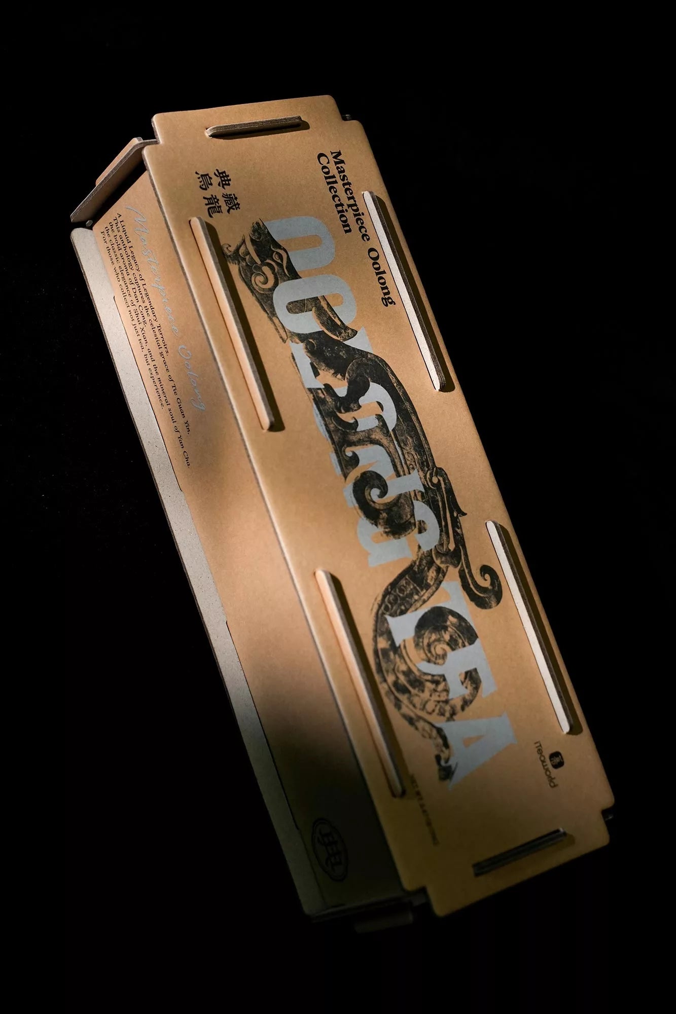 Inspired by Spring and Autumn Period(770 BC to 476 BC)jade pendants, the dragon flows through the letters of "OOLONG TEA"—a rhythmic dance of heritage and modern design.