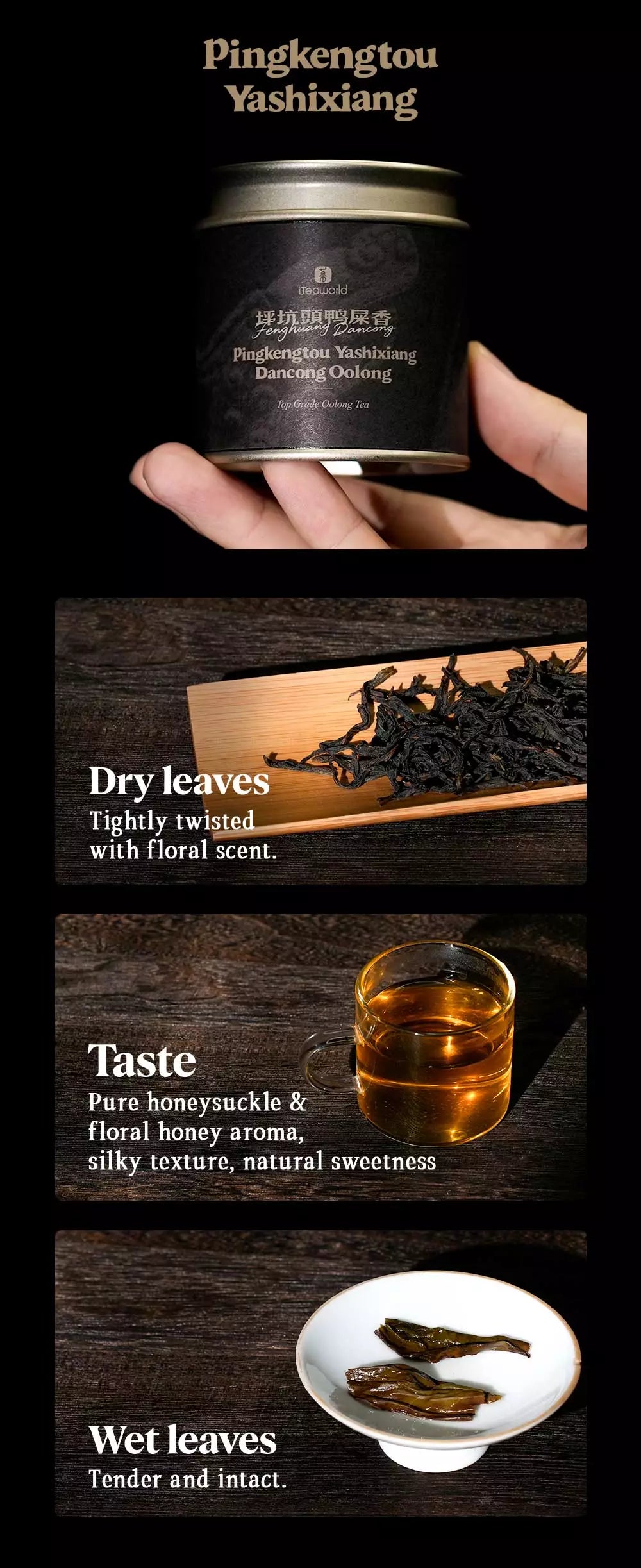 Region: Pingkengtou, Fenghuang Town — above 900m, birthplace of Yashi Xiang mother trees. Tea trees are 2nd generation, 30–40 years old, preserving authentic floral aroma and mountain character.