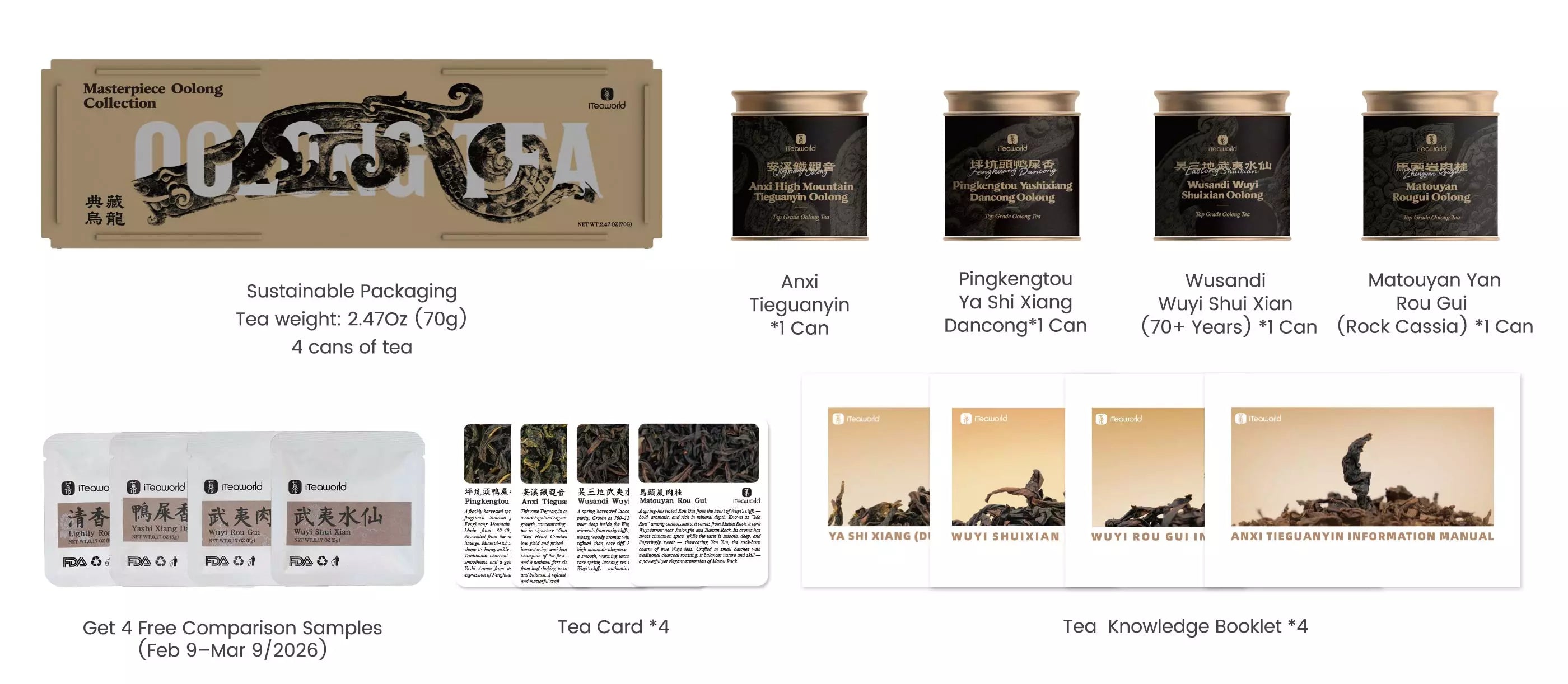 Limited-time offer (Feb 9 – Mar 9, 2026): receive four comparison tea samples with your purchase.