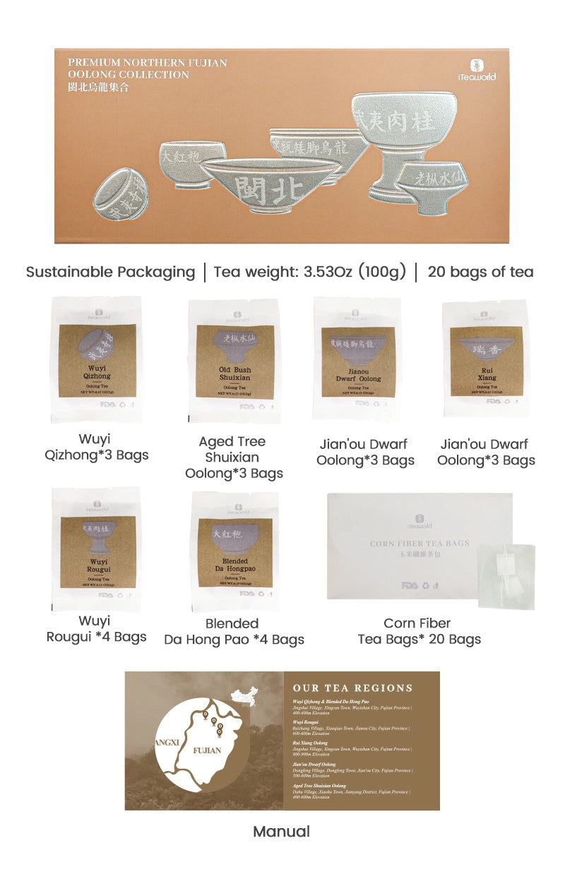 Each tea has been carefully selected to represent the unique flavors of its region, making it easy for you to systematically explore Northern Fujian Oolong. No need to piece things together—this set is a complete introduction and a full experience at outstanding value.