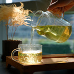 Enjoy a perfect cup of tea at work with this elegant, durable glass teapot. Made from heat-resistant borosilicate glass, it can be used directly on a ceramic cooktop. The set includes a teapot, lid (also doubles as a cup), tea infuser, and infuser holder, making brewing clean and convenient while allowing you to control flavor strength. Fully transparent, you can watch tea leaves unfurl as they steep. Ideal for green tea, flower teas, herbal teas, and more. Quick and easy—perfect for a relaxing office tea break.