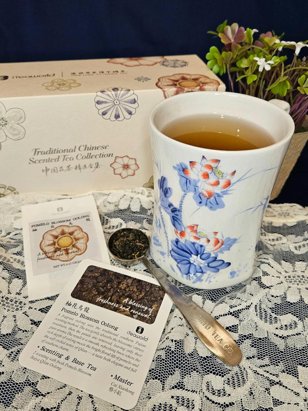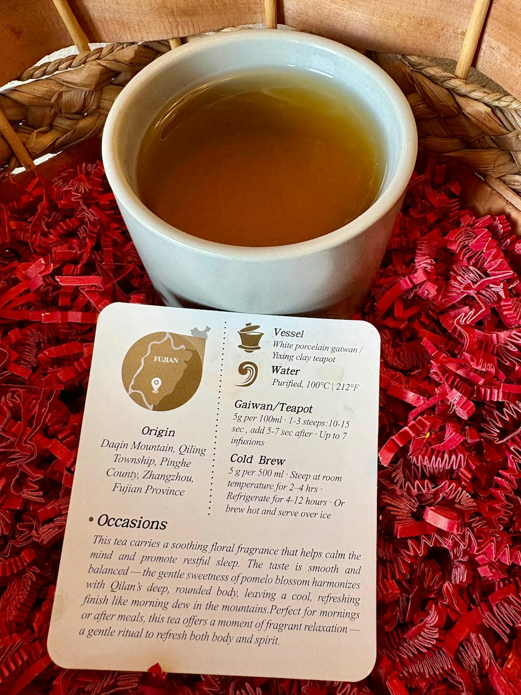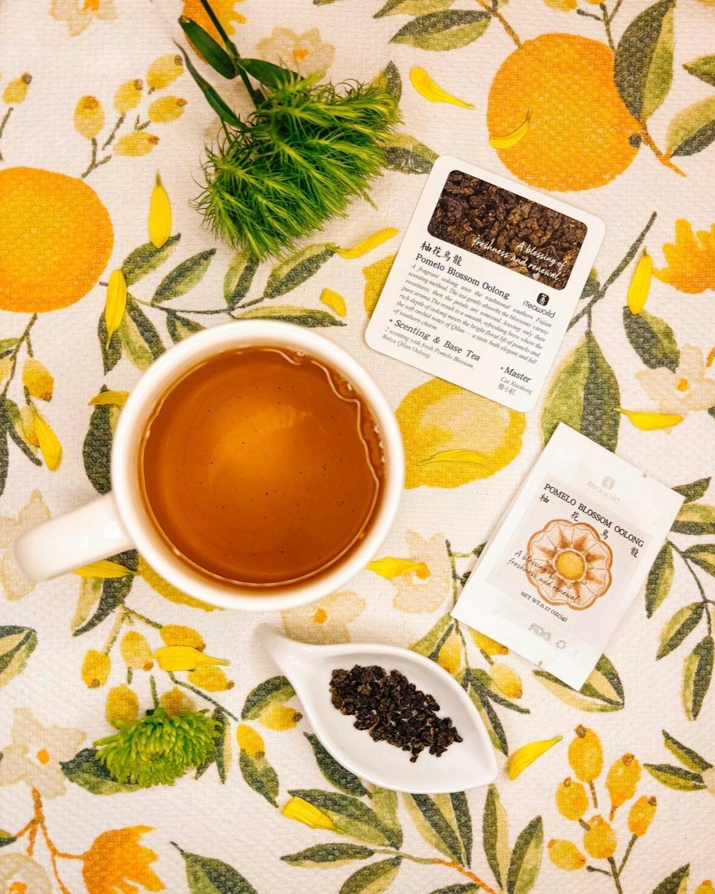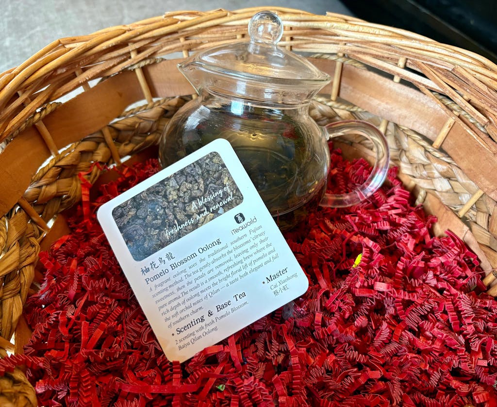 This Pomelo Blossom Oolong comes from that origin. Its aroma blends the orchid-like fragrance of Bai Ya Qi Lan with the delicate sweetness of pomelo flowers. The tea is fresh, smooth, and naturally sweet, offering both the richness of Oolong and the light, cooling sweetness of citrus blossoms. You’ll notice the gentle sweetness of pomelo flowers at the first sip, followed by the unfolding depth of Oolong. The texture is silky, the aftertaste lingers, and the finish carries a refreshing hint of pomelo blossom.