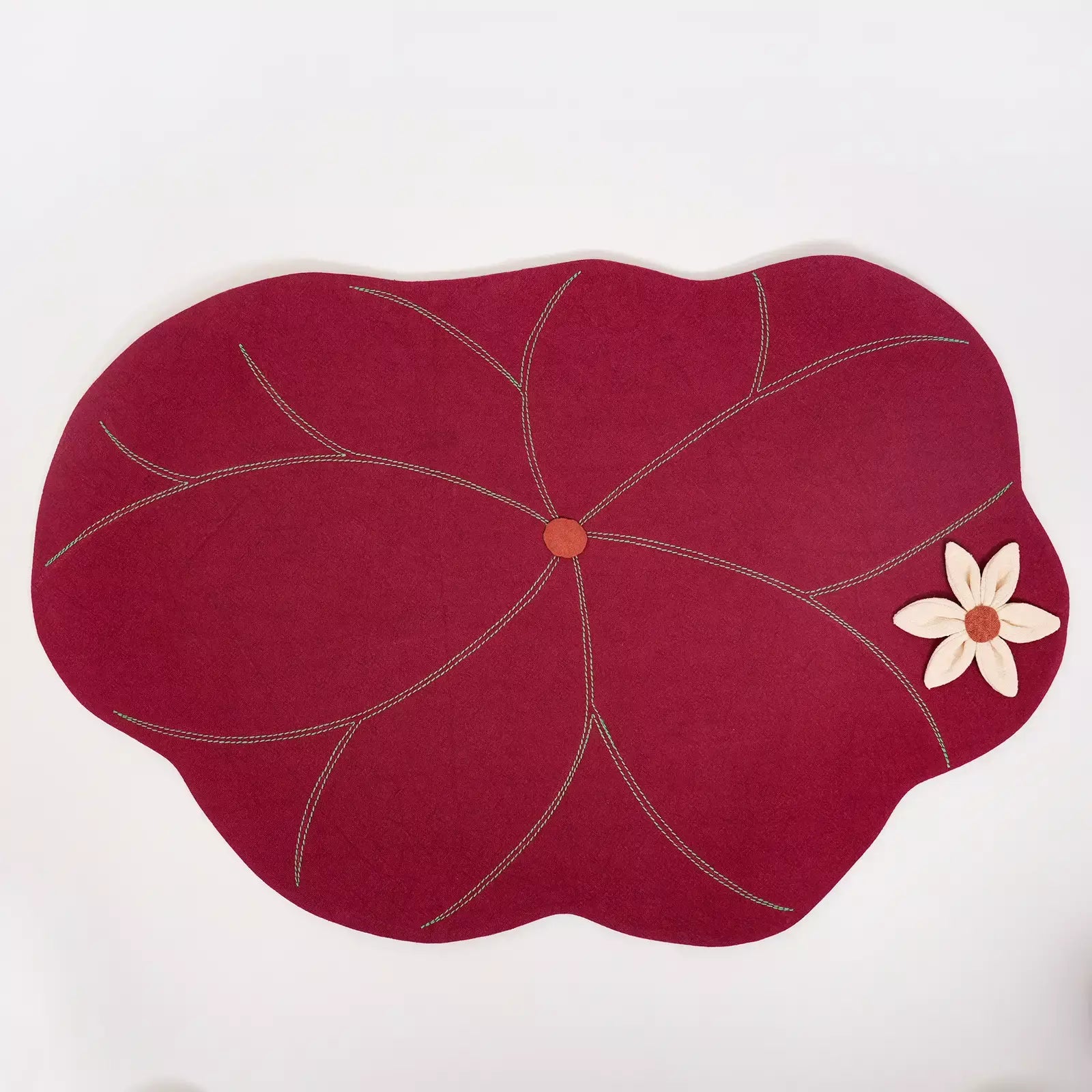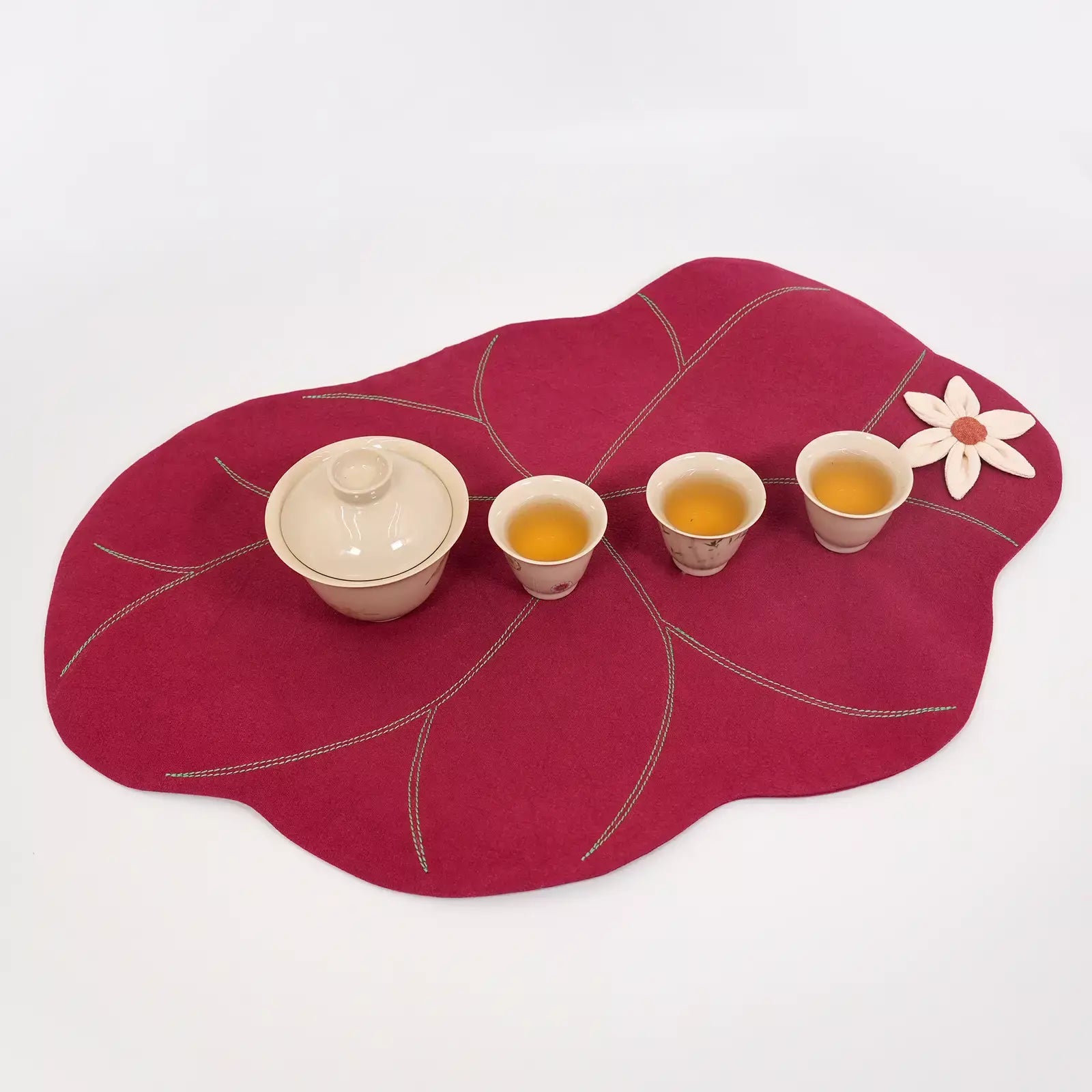Lotus Leaf-Shaped Tea Mat (Blue, Green, Red): Irregular shape, max diameter 37 cm, min diameter 30 cm