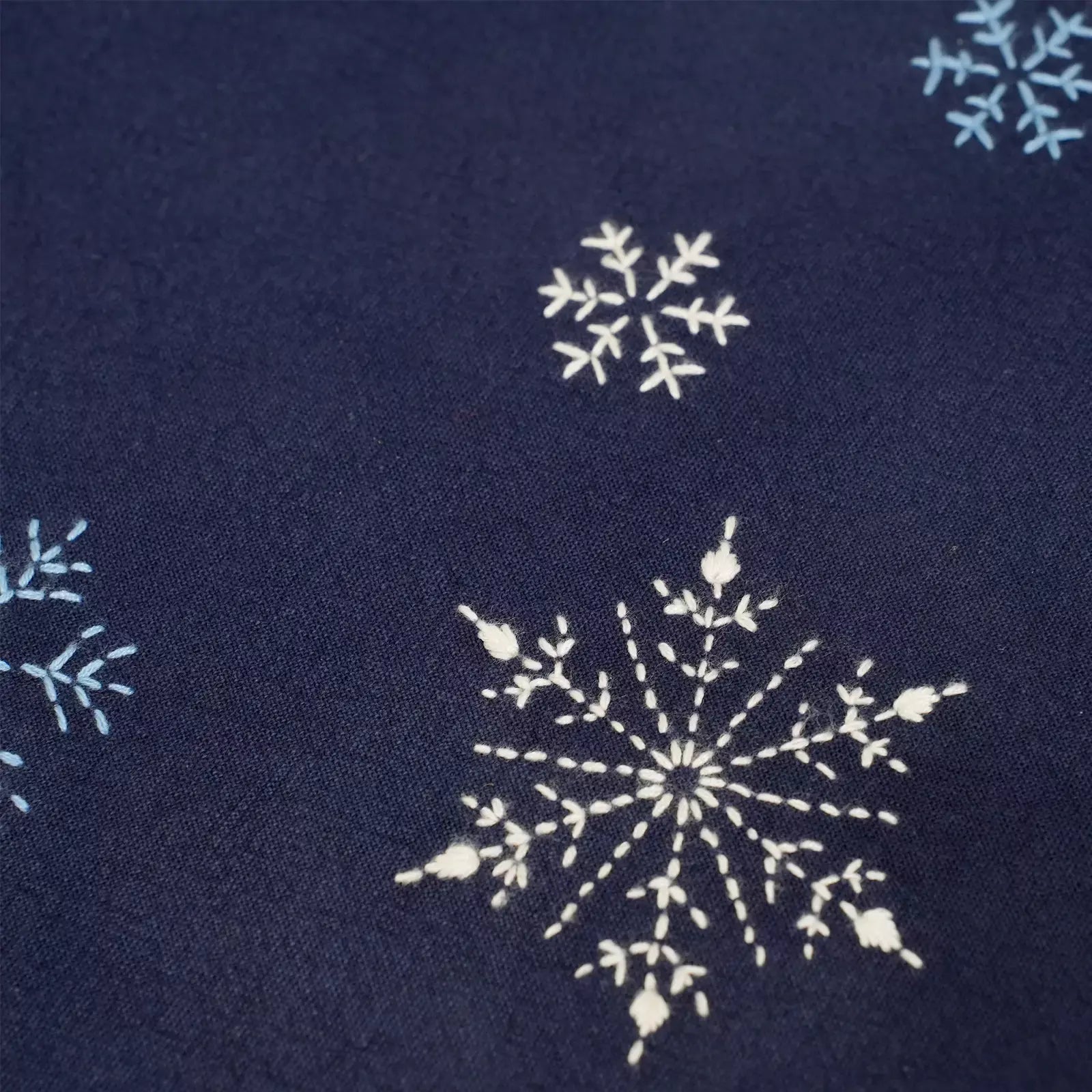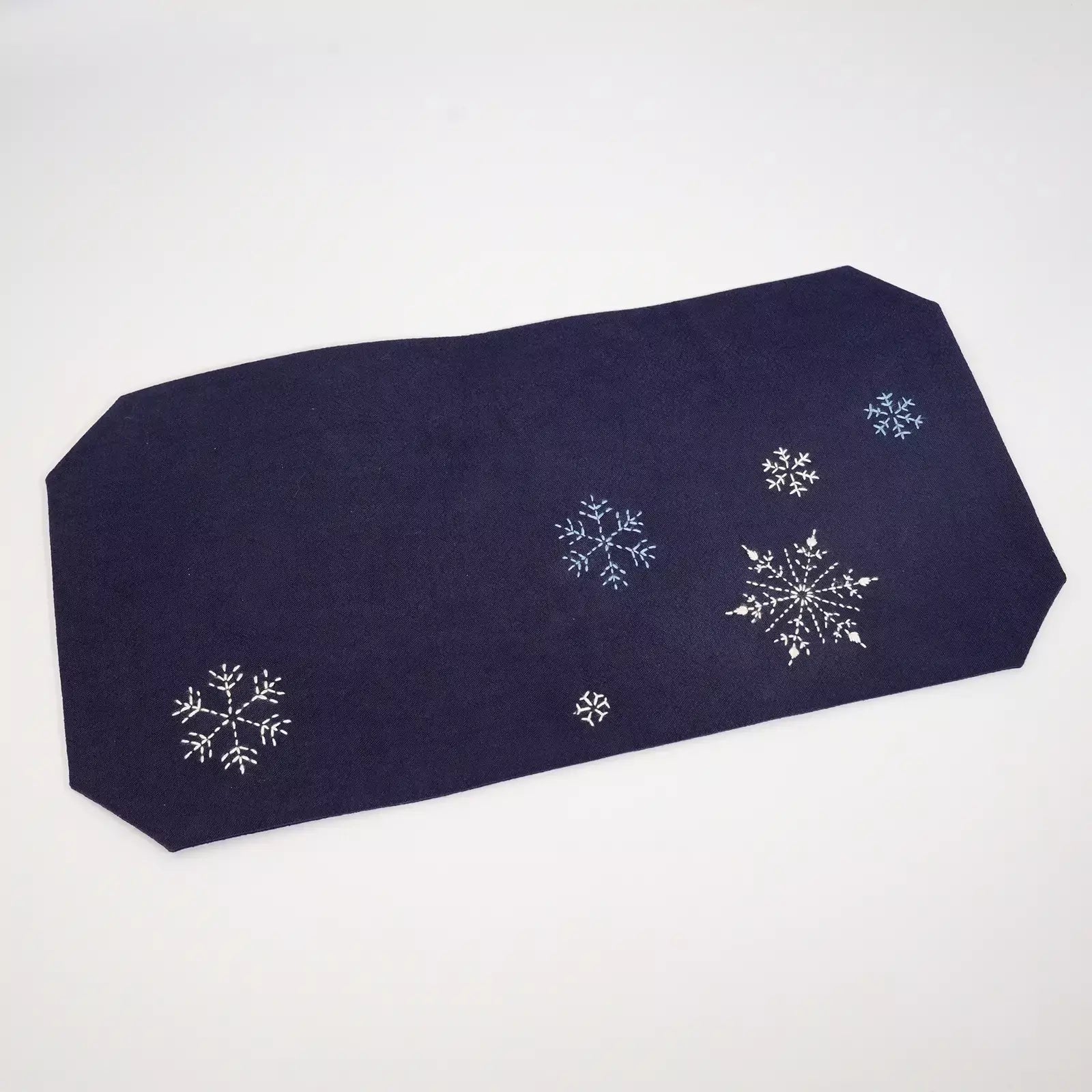 Hand-embroidered Tea Mat – Snowflake Design: 20 × 38 cm