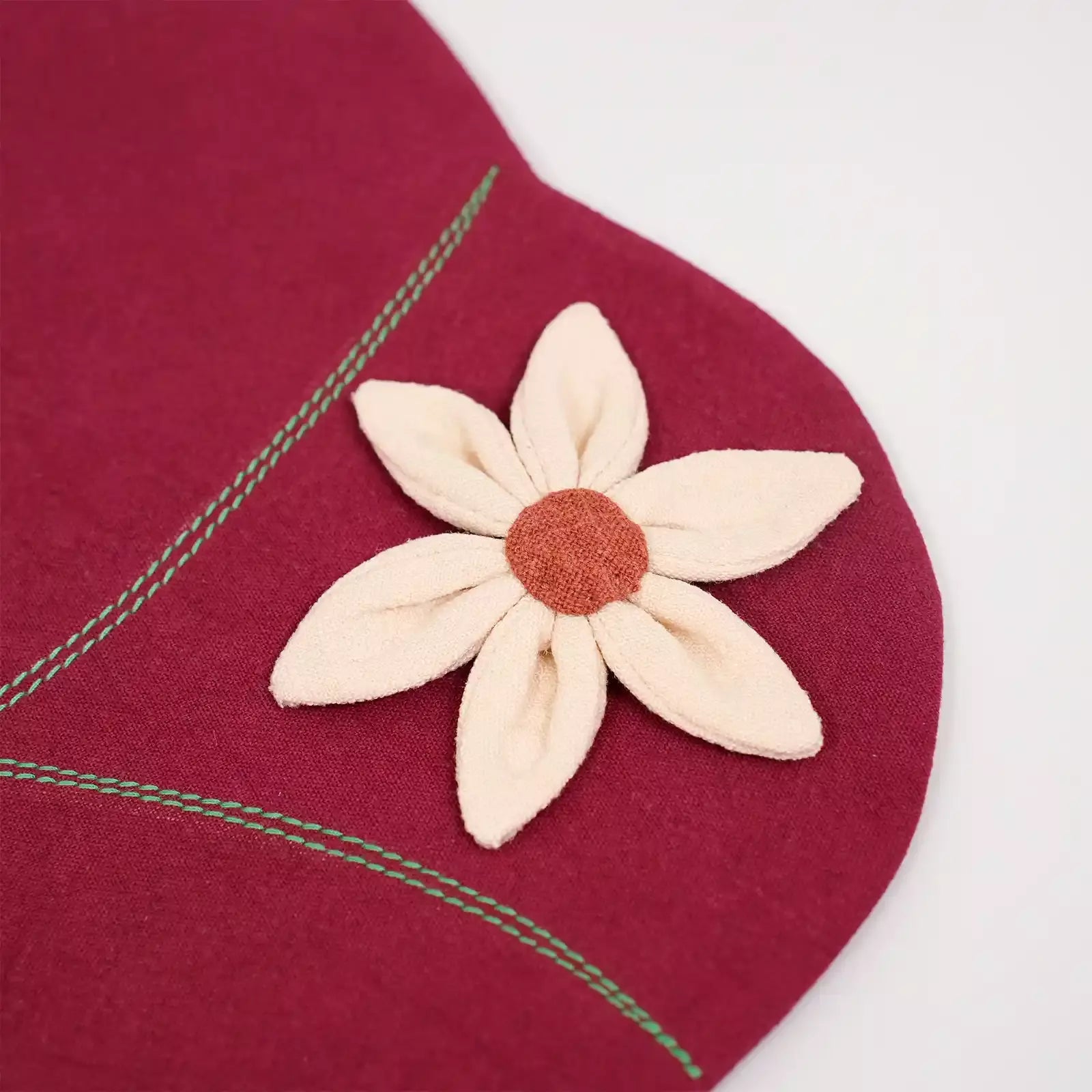 Hand-embroidered Tea Mat – Red Fruit Design: 20 × 38 cm