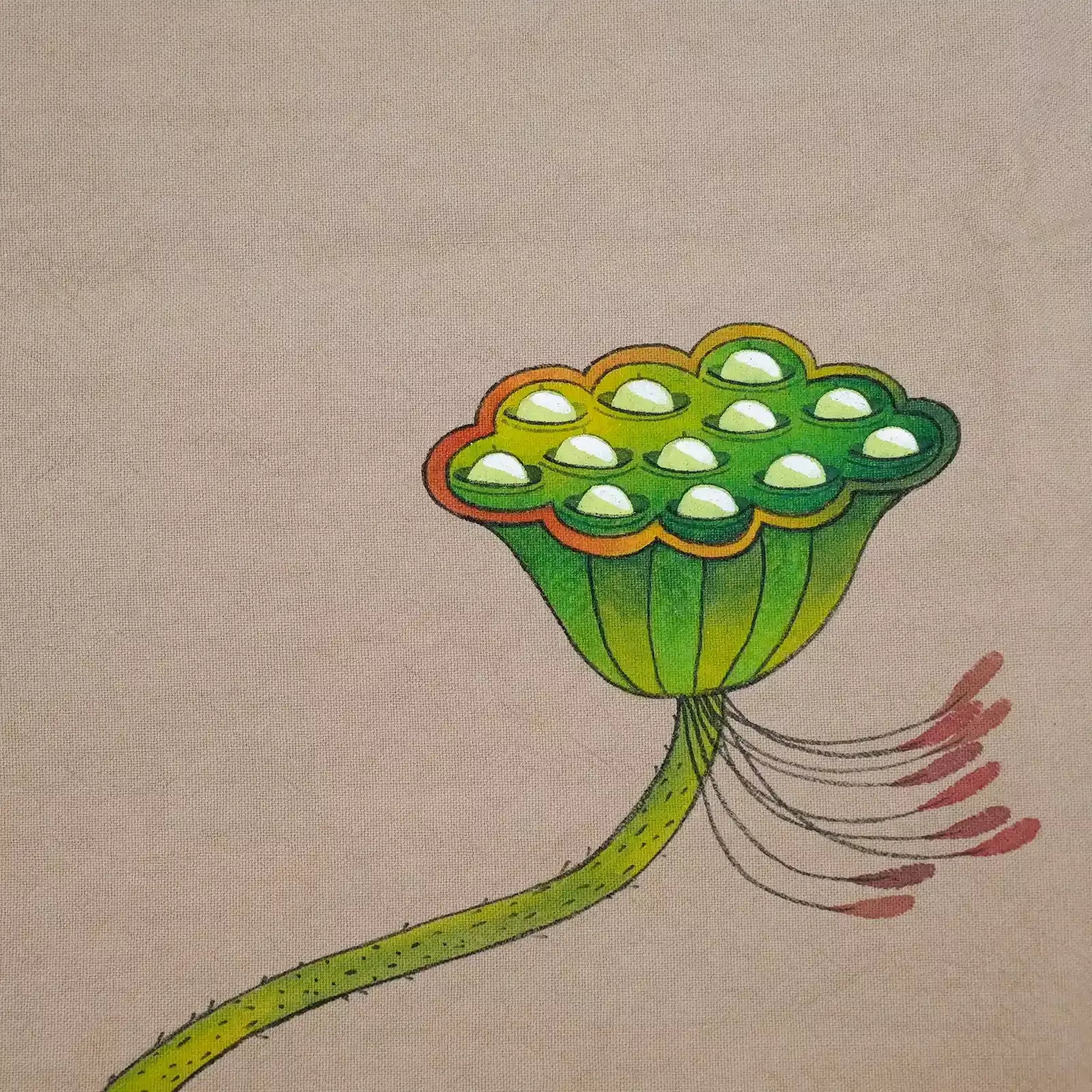 Hand-painted Tea Mat – Lotus Pod Design: 49 × 29 cm