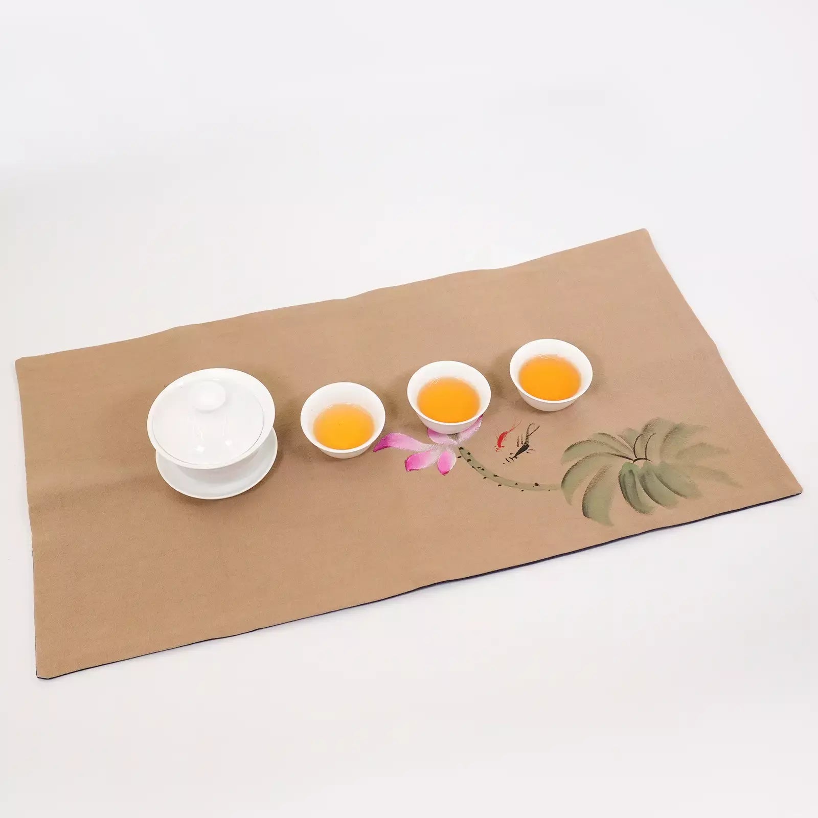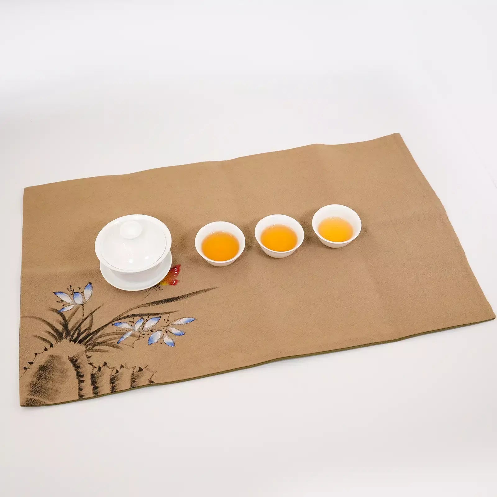 As an essential decoration on the tea table, a tea mat helps organize teaware such as teapots and cups, bringing them together into a harmonious setting. It sets the tone for the tea experience—whether tranquil, elegant, or lively. Placed on the table, it also helps prevent direct contact between teaware and the surface, offering cushioning and anti-slip protection.