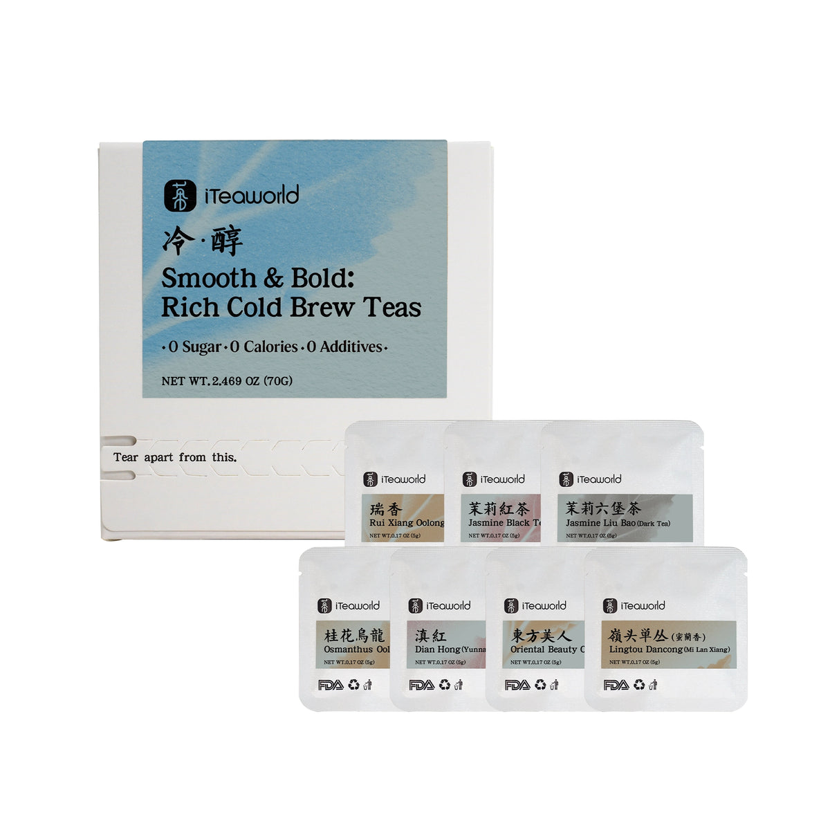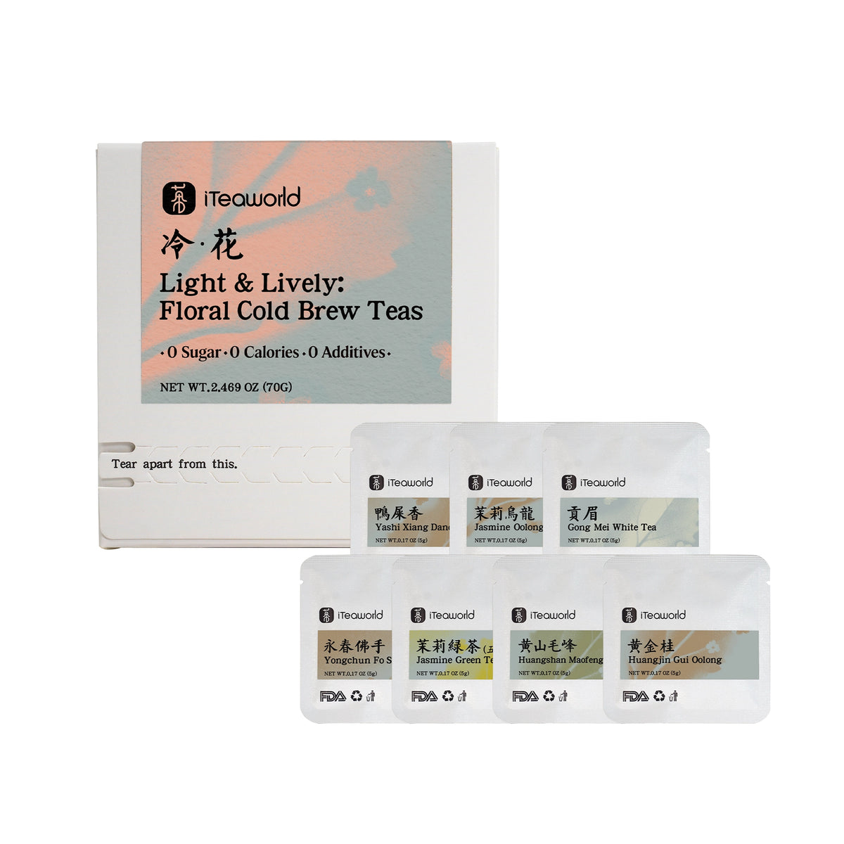 Цена за единицу товара $0.21 USD за g Легкие и живые цветочные холодные чаи | 7 сортов чая, идеально подходящих для холодного заваривания.