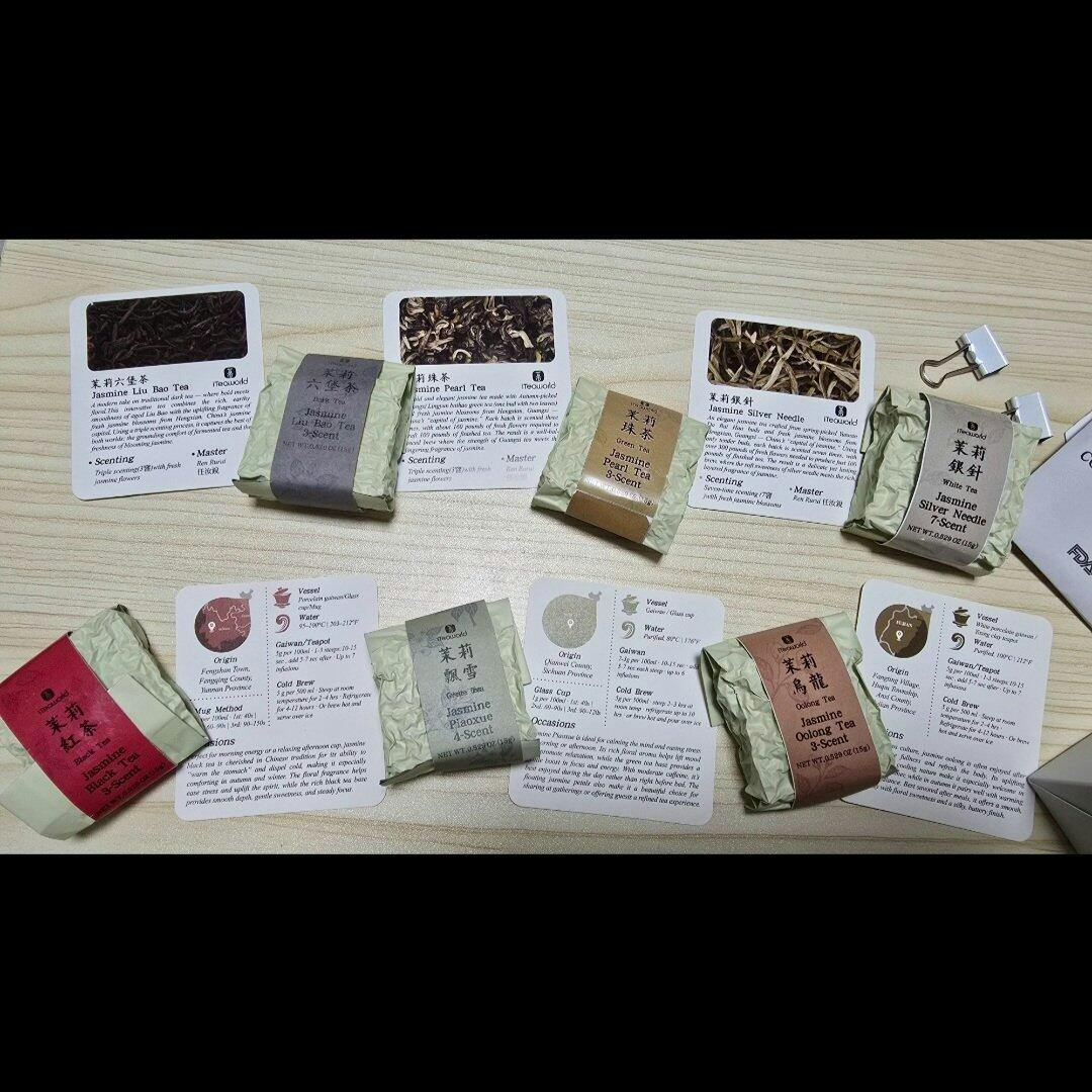 All tea bases are 2025 harvests (except Liu Bao, which was harvested in 2023 and aged for two years), scented in 2025 with fragrant jasmine flowers from Hengxian, Guangxi. Each 15g pack is individually vacuum-sealed in an aluminum bag to lock in aroma, preserving the original freshness of both tea leaves and jasmine. Every brew delivers a truly fresh and fragrant cup.