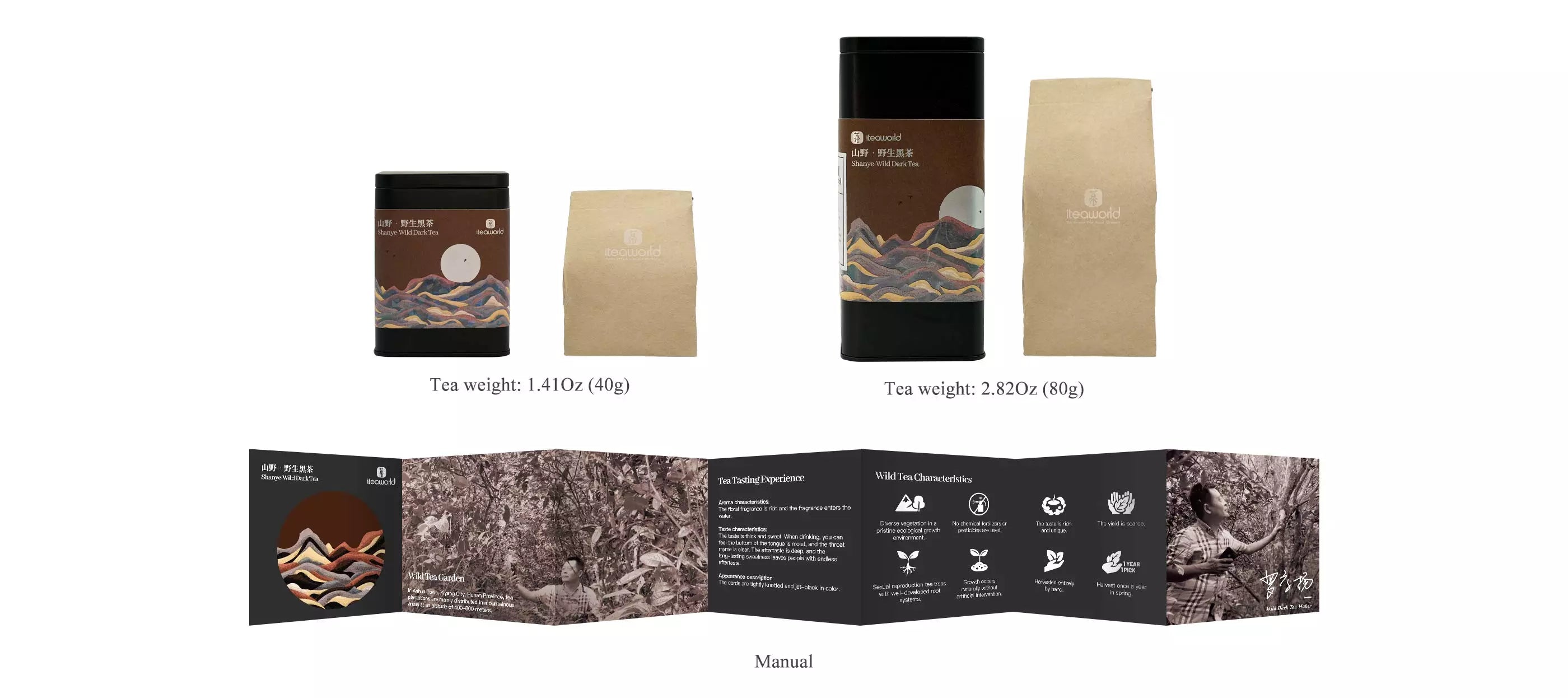 Дикий черный чай производится в уезде Аньхуа, городе Иян, провинции Хунань, на родине черного чая Аньхуа. Чайные сады в основном расположены в горных районах на высоте 1000 метров. Выращенный в нетронутой экологической среде с обильной растительностью, этот дикий черный чай выращивается без использования химических удобрений и пестицидов, что приводит к ограниченному урожаю — только один весенний урожай в год. Обработанный с использованием техники чая Qiujiang Bopian, он предлагает чистый и стойкий аромат соснового дыма. Вкус насыщенный, мягкий и сладкий, с длительным послевкусием и уникальным ароматом соснового дыма. После употребления во рту остается длительная сладость, оставляющая незабываемые впечатления. Даже после нескольких завариваний он сохраняет свой отличительный аромат.