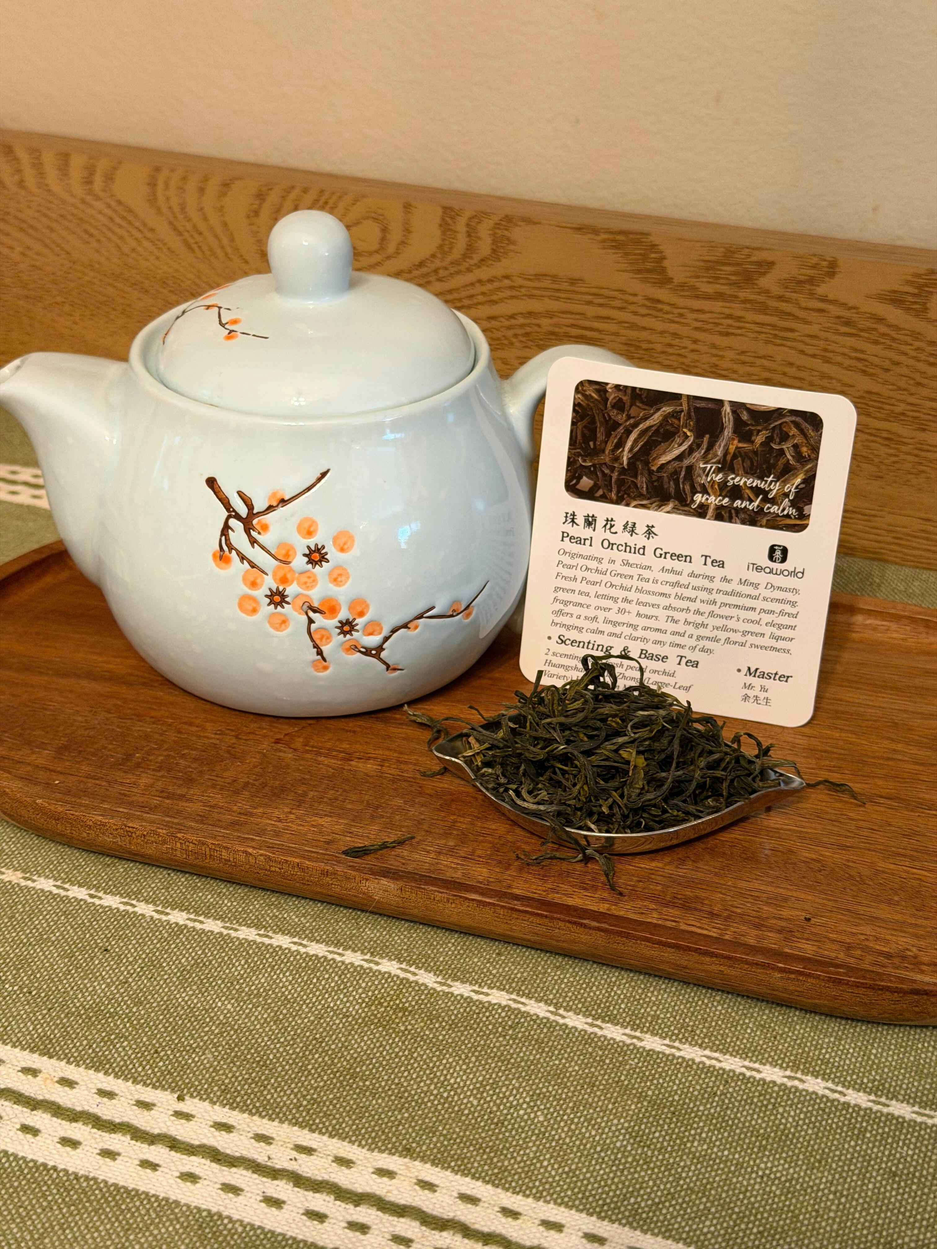 Its aroma is elegant and serene, with a soft, cooling sweetness—reminiscent of orchids blooming in a quiet valley. Compared with the lively, expressive fragrance of jasmine tea, Pearl Orchid tea is more subtle and deep, yet wonderfully long-lasting.